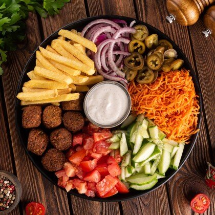 Шаверма на тарелке с фалафелем