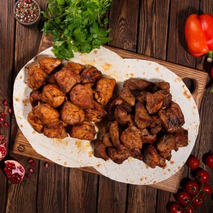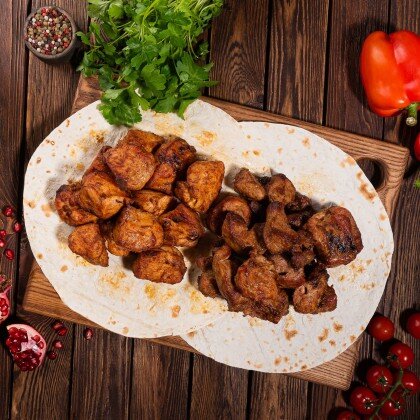 1 кг сочного куриного филе в фирменном маринаде ( 1000 г) Подаётся с луком.